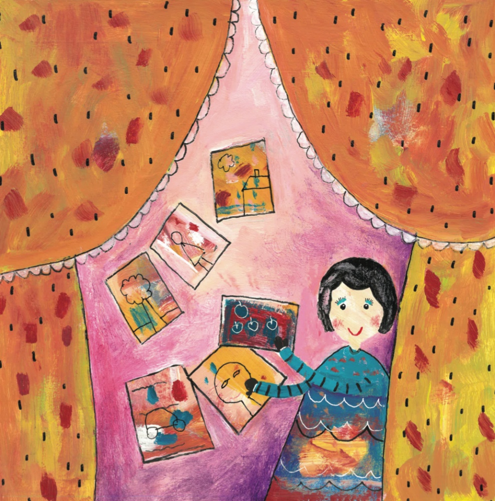 Predstavljene ilustracije dio su istoimene slikovnice Andrejin štafelaj, u izdanju Naklade Semafora, prema tekstu Silvije Šesto. Knjiga je inspirirana radom umjetnice i njenim osebujnim pristupom slikanju i uljepšavanju svijeta oko sebe – od platna i predmeta do prostora u kojima boravi. U središtu priče je lik susjede Anđele, koja, očarana Andrejinim slikarskim umijećem, kradomice uzima njezin štafelaj nadajući se da će tako postati “kao ona”. No, brzo otkriva da stvaralaštvo ne dolazi iz tuđe opreme, već iz vlastitog identiteta.